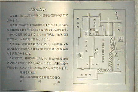 城跡公園の北入口には、工兵第四聯隊跡碑が立っている。明治42年〜昭和20年まで存在した兵舎の営門がこのあたりにあり、兵舎は