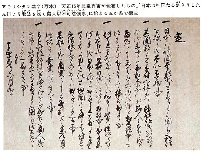 出来事が起こる。秀吉は、突然バレテン追放令を発布したのである。