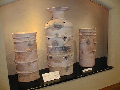 大石塚古墳の濠があったのである。以下数枚の写真は、この「伝統芸能館」の中にある大石塚古墳の出土品。