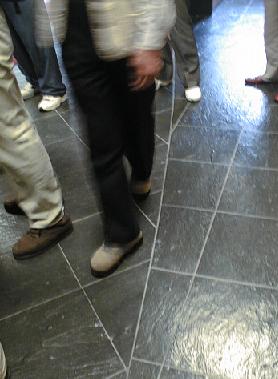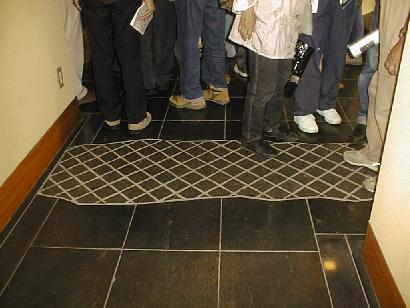 の写真を見て欲しい。この建物の中の床タイルの写真だが、変な形に張ってあるのが分かると思う。この曲線の部分まで、