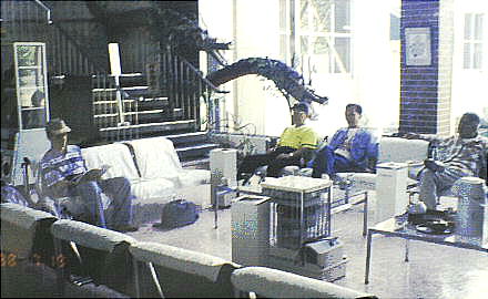 くつろいでオバちゃんから入れて貰ったお茶を飲む歴史倶楽部のメンバー。オバちゃんは、「大阪からわざわざ!」と驚いていた。