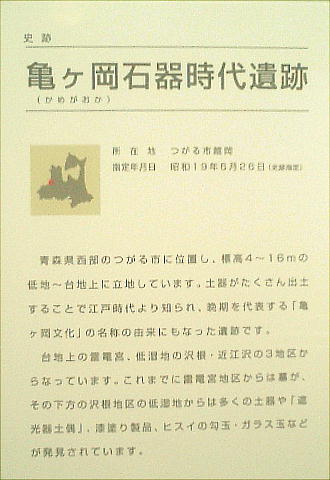 れている。また、青森県内の多くの縄文遺跡には、いわゆる亀ケ岡文化期といわれるころの遺跡は数多く、各地でこの文化