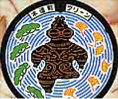 駅の看板、マンホールの蓋、橋の欄干、交通安全標識、そしてATMの看板にまで。