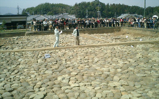 今日は、同じ明日香村の3ケ所で同時に説明会が開催された。この「正殿跡」と、すぐ側の木簡が出土した「排水溝