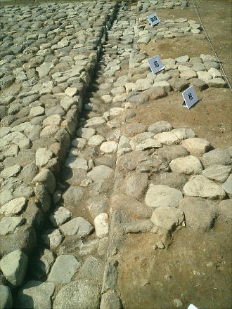 ほかは、ほぼ完全なかたちで石敷が残っていました。石敷は基本的に人頭大の石を敷きつめたものですが、よくみ