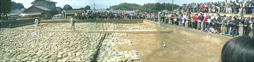 この日の係員による説明は、ほぼ新聞記事の内容と同じものだったので、このHPは遺跡写真とそれらの新聞記事で