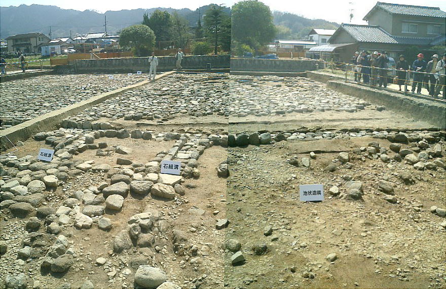 州浜状に砂利を敷いているなど、これまでの飛鳥時代の庭園としては類例のないものです。それが、また、天皇