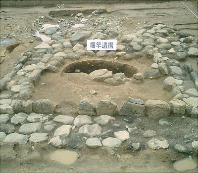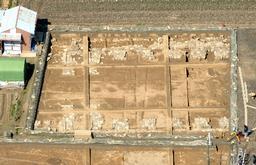ルを調査したところ、柱穴26本(最大で直径約1.5メートル)や石敷きなどが見つかり、掘っ立て柱建物跡の