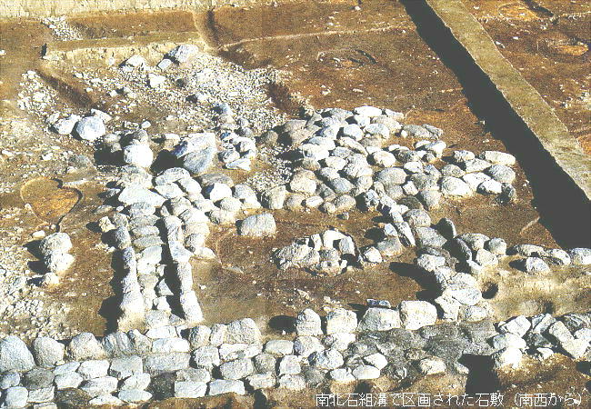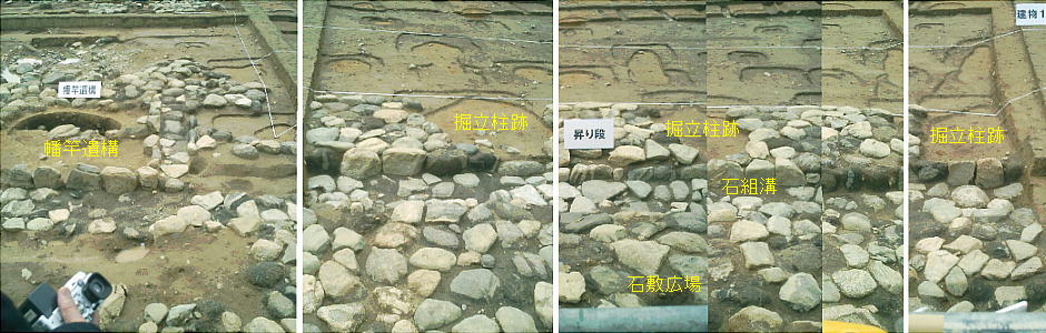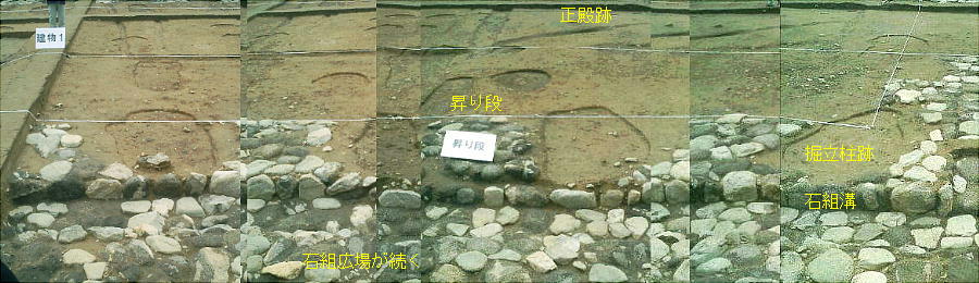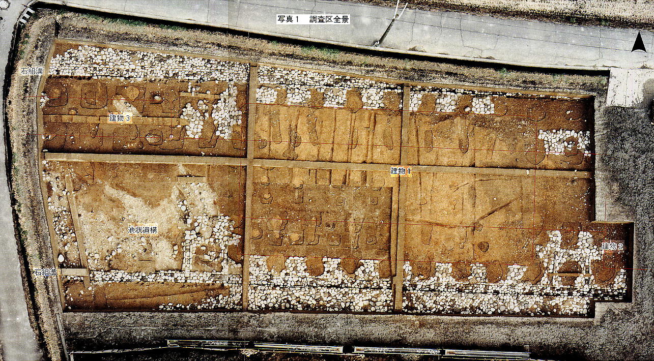 わかった。中央の建物の南北両側にひさしが付き、その下に石組みの溝を設けていることや、周囲に人頭大の石を