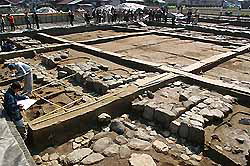 下の写真は、クリックして貰うと上空から見た発掘現場全体が見れます。