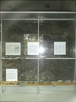 のまま「はぎとり加工」されていて保存されており、その前に、出土した、石器・土器・骨類などがガラスケースに展示さ
