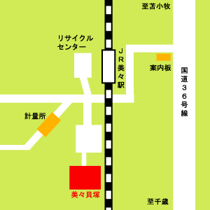 札幌方面から行くと、国道36号線を苫小牧方面へ南下し新千歳空港を右手に見て、JR千歳線「美々駅」を目指す。美々