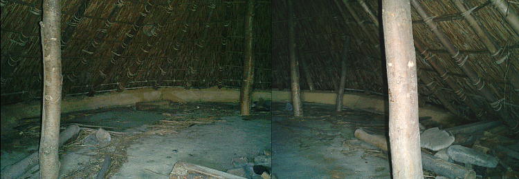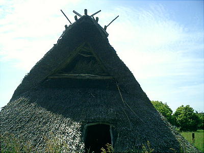 (これ:上 が道路の左側。左の隅の方に、下の竪穴式住居の復元がある。)