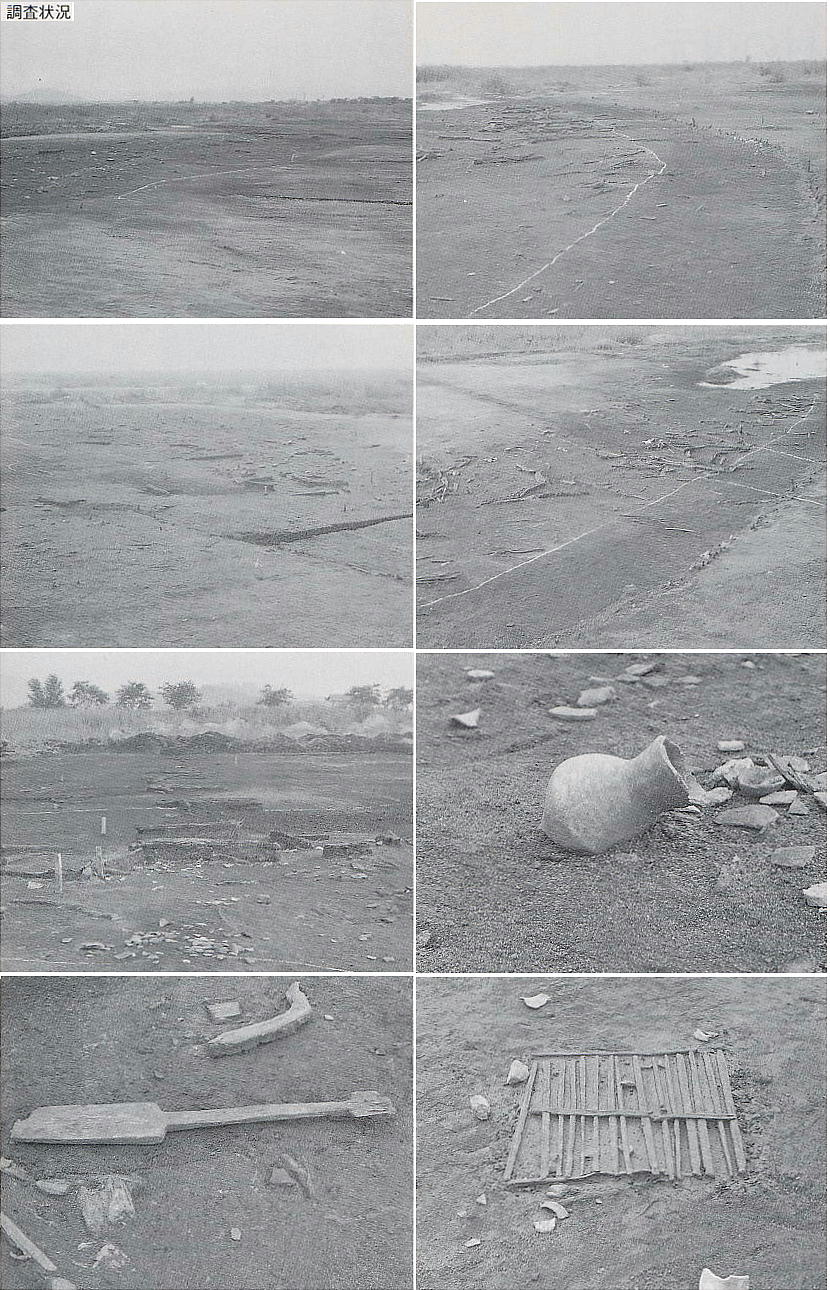 発掘当時は、静岡県の登呂遺跡で発見された木製出土品をはるかに上まわる木製農具や狩猟具が出土し、奈良県の唐古遺跡