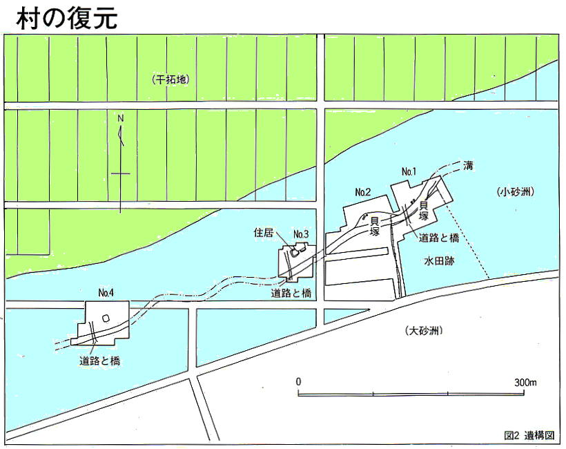 る柵列跡、数基の方形周溝墓、2ケ所の貝塚など、弥生時代中期前半の遺構だけで、他の時代の遺構は検出されていない。