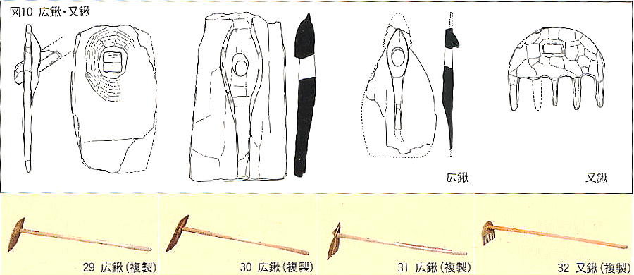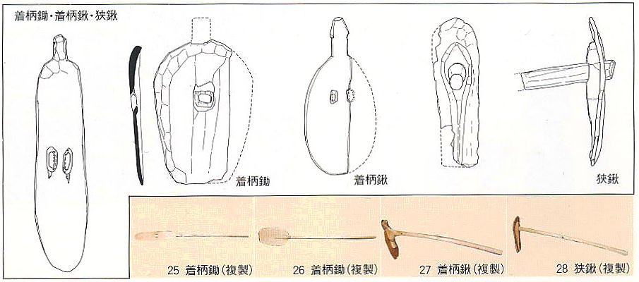 いたような気すらしてくる。スコップや鍬などは、現代のものと形状はほぼ変わらず、横浜の三殿台遺跡、登呂遺跡、福岡