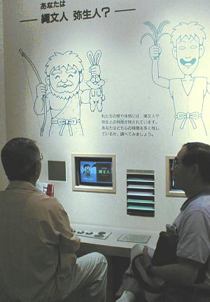 ている。「あなたは縄文人?弥生人?」のコーナーではパソコンで、見学者の頭蓋骨が「縄文人」「中間人」「弥生人」