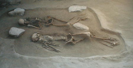 左の写真は「英雄の死」と呼ばれている。矢じりを山ほど射こまれて埋葬されていた事から、