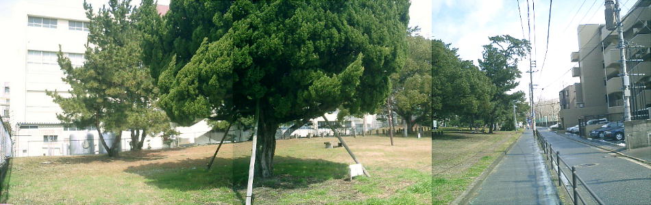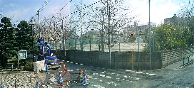 西南大學の前にある修猷館高校のグラウンド(上)。ここから弥生時代の集落跡が発見されている(西新遺跡)。