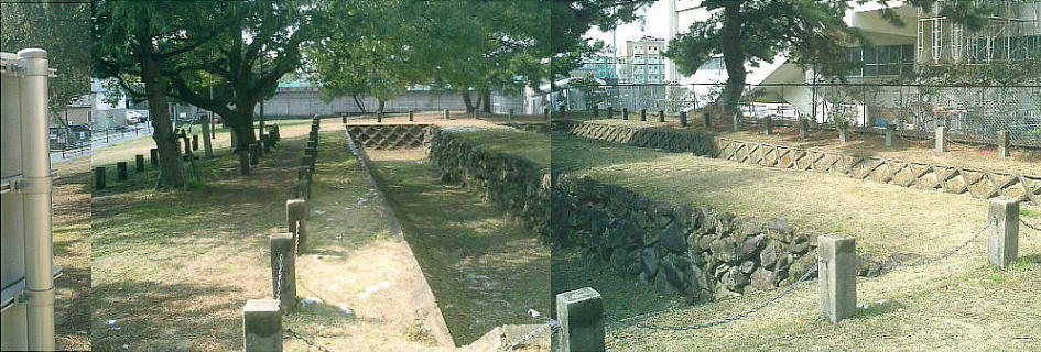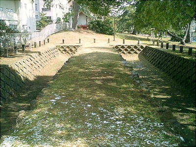 これは西南学院大学前の防塁である。土塁を積んでの復元。