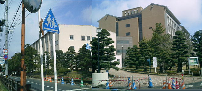 福岡市西区警察と税務署。この建物の先に元寇防塁がある。木が見えている所。