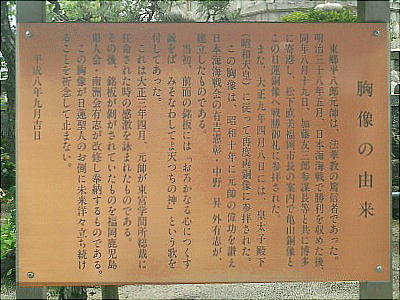 法華経の信者であった東郷平八郎の像もここにある。