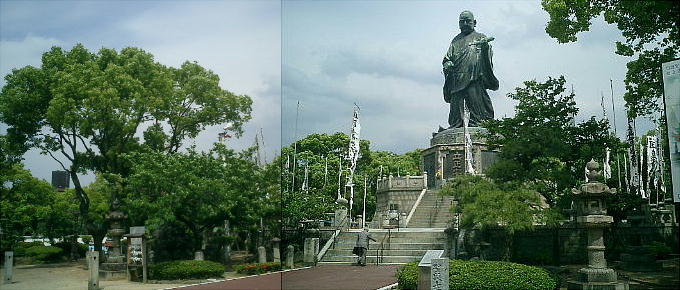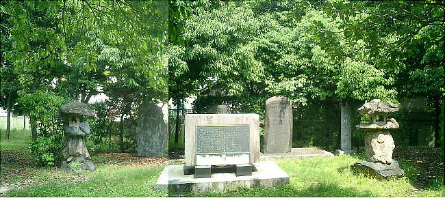 銅像建立場所の全体像と、それを背後から見たところ。