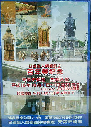 亀山上皇像から西、約150メートルの位置に日蓮上人像がある。元寇記念館のすぐ前である。日蓮上人像が完成