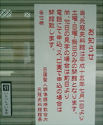 ところがこの日は鍵を持った人が不在だと言うことで資料館には入れなかった。なんとええかげんな。