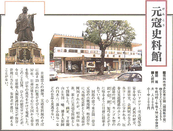 元寇到来を予言した日蓮聖人像がたっているすぐ前に元寇資料館がある。元寇資料館は日蓮聖人像・亀山上皇像建