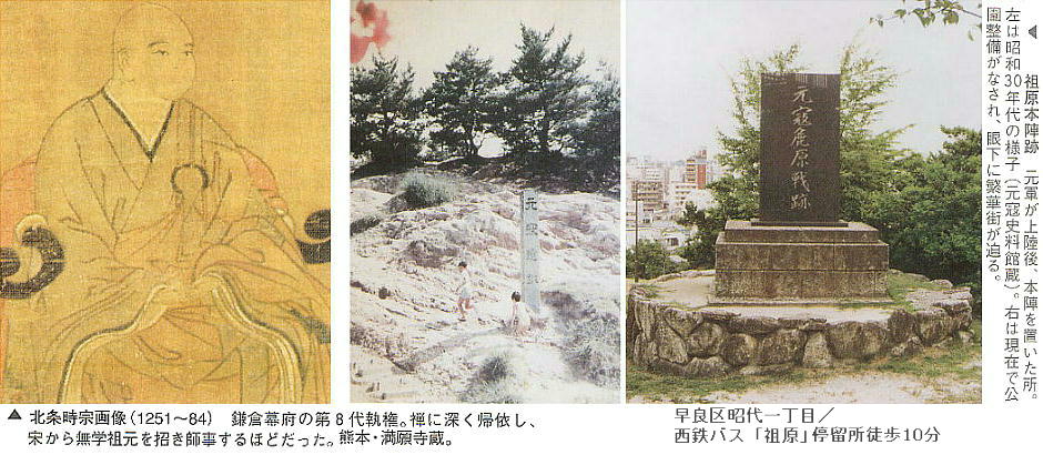 文永11年(1274)10月、高麗軍を主力とする元軍は、今津から百道原に上陸し、祖原、鳥飼、赤坂の一帯は戦場
