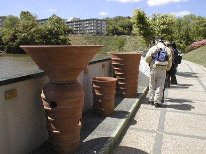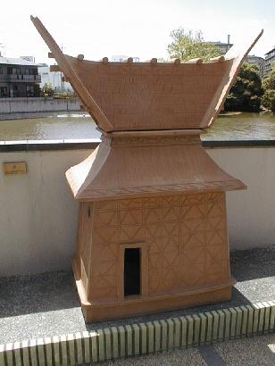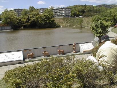 池は古代からあった。池のほとりに、今城塚古墳から出土したハニワのレプリカが並んでいる。