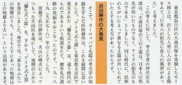 かった。「縄文時代は弥生時代よりも古い。」「縄文土器と弥生土器を使っていた人々は、部族が違うのではなく時代が違