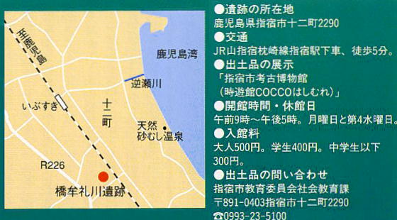 橋牟礼川遺跡は、指宿市の歴史郷土館である「時遊館COCCOはしむれ」から歩いて数分の所にある。遺跡のあった場所