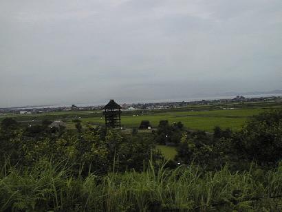 向山古墳群のあたりから見た「伯耆古代の丘公園」と淀江平野。 428K-JPEG