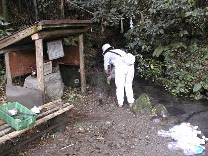名水「真名井の水」で回る水車。99.8.28歴史倶楽部のMenberで。