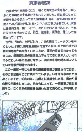 この古墳群の中に須恵器を焼いた窯跡もあった。この泉北ニュータウンの一帯は、古代の須恵器を焼いた釜跡が多数