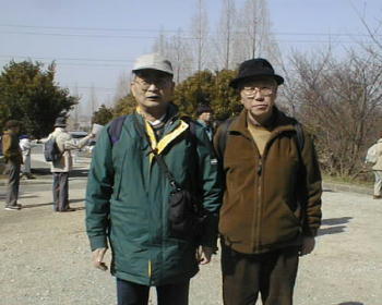 梅や桃の花が満開。まだ桜にはちょっと早いかな。この会で知り合った大阪交野市の村田さんと。