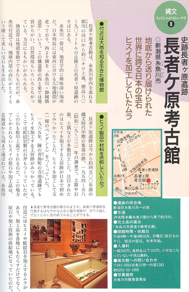イの原石が250点も出土し、さらにその多くが加工途中の半製品或いは破損品である事が判明し、長者ケ原はヒスイを中