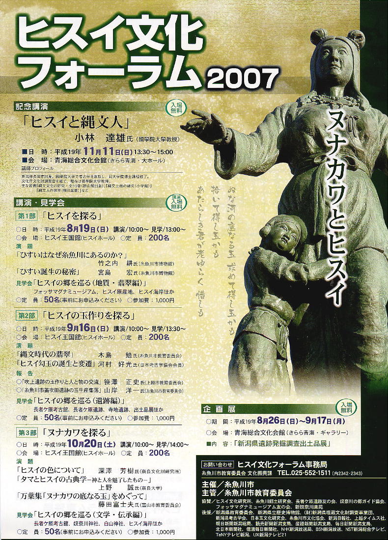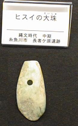 糸魚川流域の材料である事が判明している。即ち、縄文時代のヒスイは全て糸魚川で産出し加工され、一元的に日本全国に