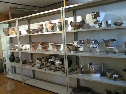 内部はさほど広くはないが、長者ケ原遺跡から出土した遺物で埋め尽くされている。