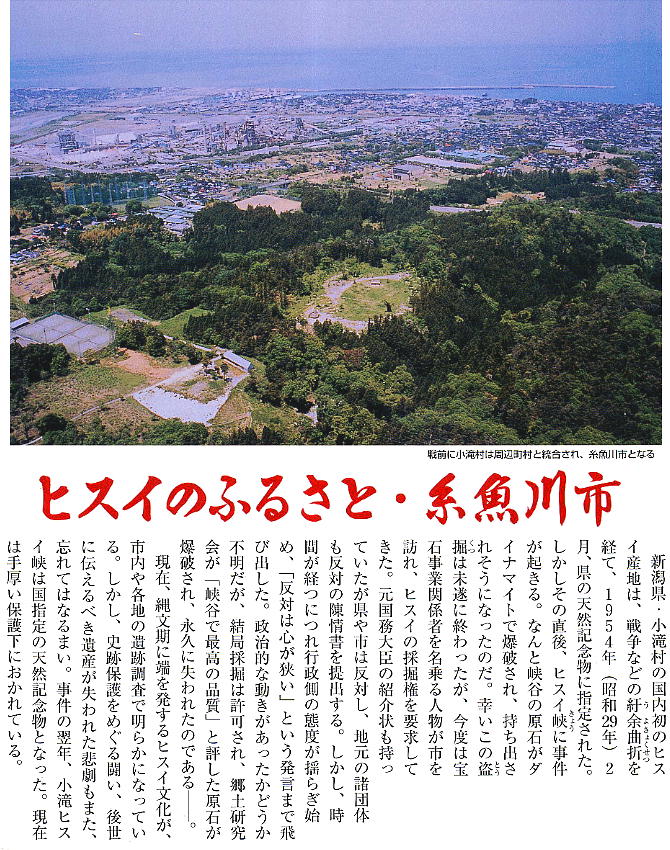 ヒスイの一大産地である事は広く知れ渡っている。しかし、明治になって遺跡からヒスイが発掘され出した当時は、日本に