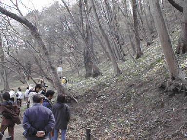 ありこの日は満開で、多くの人々がカタクリの花を見学に訪れていた。岩宿遺跡の周辺は氷河時代の植物が自生して