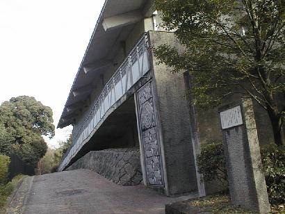 駐車場から石段を登り坂道を上っていくと、2,3分で甕棺展示館に着く。