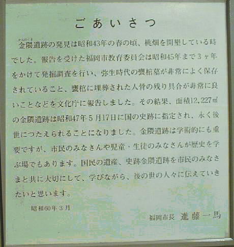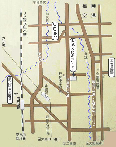 している。近くには、日本でも最古の水田跡の一つと言われる板付遺跡や、すこし南下した春日市には、奴国の