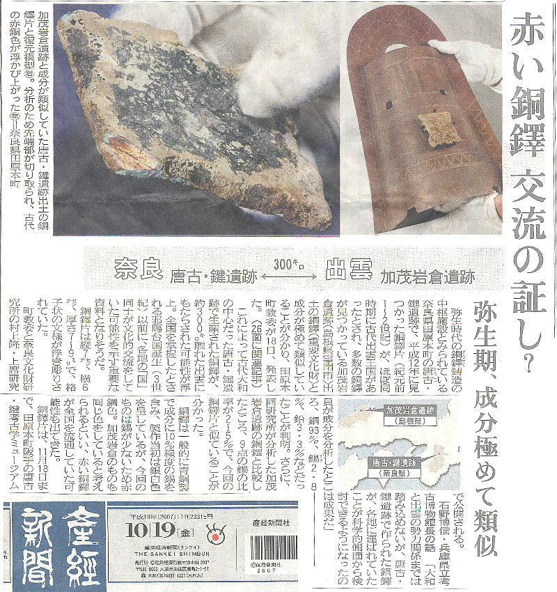 しかし銅鐸の鋳型は発見されており、銅鐸を使用或いは製造していた事は間違いない。かなり大規模な青銅器生産