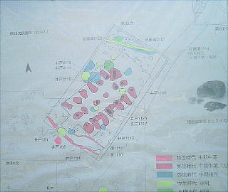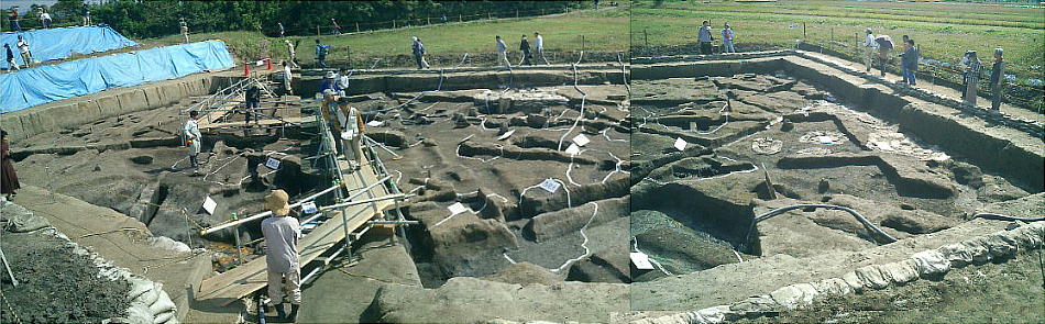 られている、などが判明した。遺跡の規模は、環濠内の集落域が400m前後あり、大型建物跡、多量の絵画土器