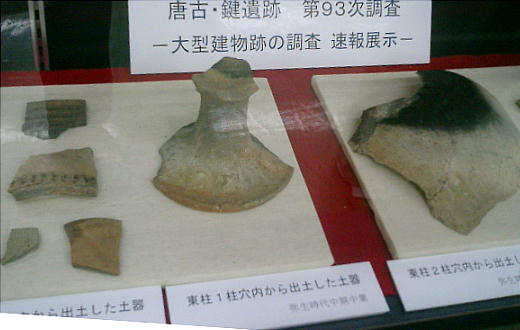 上記出土品は、田原本町の中央体育館にある「唐古鍵遺跡資料室」に、他の調査から出た展示品とともに並んでいる。