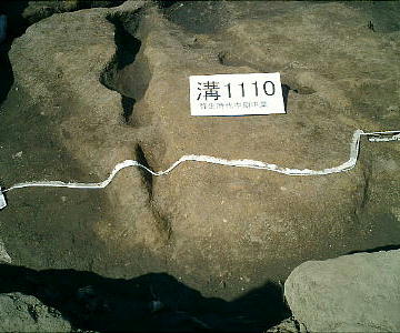 今回は遺跡のどまんなかに近い。環濠の中心に近く、東側の区画溝ではヒスイの勾玉(まがたま)を入れた褐鉄鉱