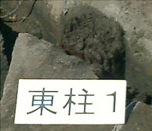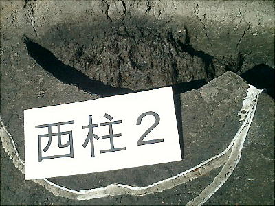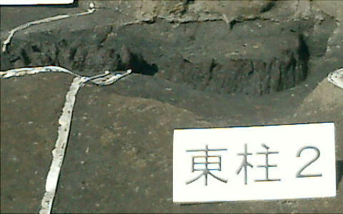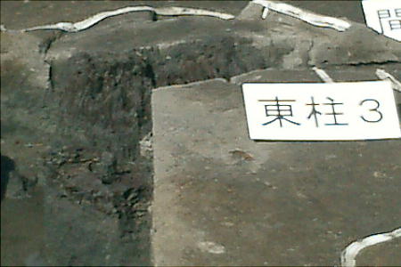 柱が埋まっていた穴はさらに巨大で、最も大きいものは幅3・4mあった。この柱の根本付近には約20cm四方
